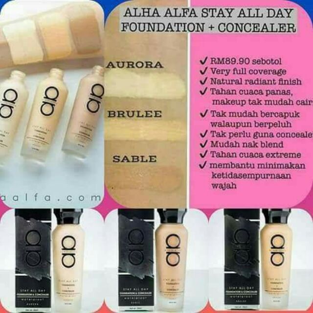 Alha Alfa Stay All Day Foundation Concealer Waterproof Malaysia Fondation Shopee Indonesia
