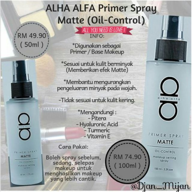 Ready Stock Alha Alfa Matte Primer Spray For Oily Skin Shopee