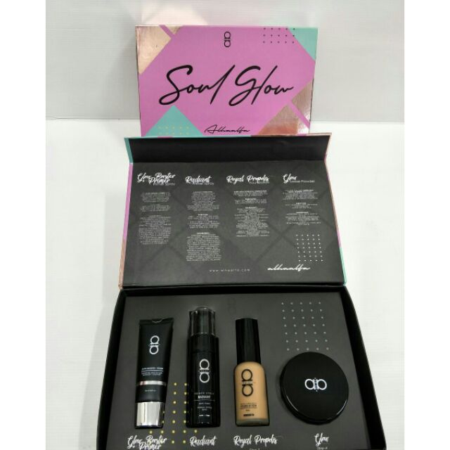 Alha alfa soul glow. Xtra glow set 88 70 57 70. 1 pcs glow booster primer perfecting make up base radiance comfort. 1x alhaalfa cushion blusher. Exclusive alha alfa base make up set for anugerah bintang popular berita harian abpbh 2019.