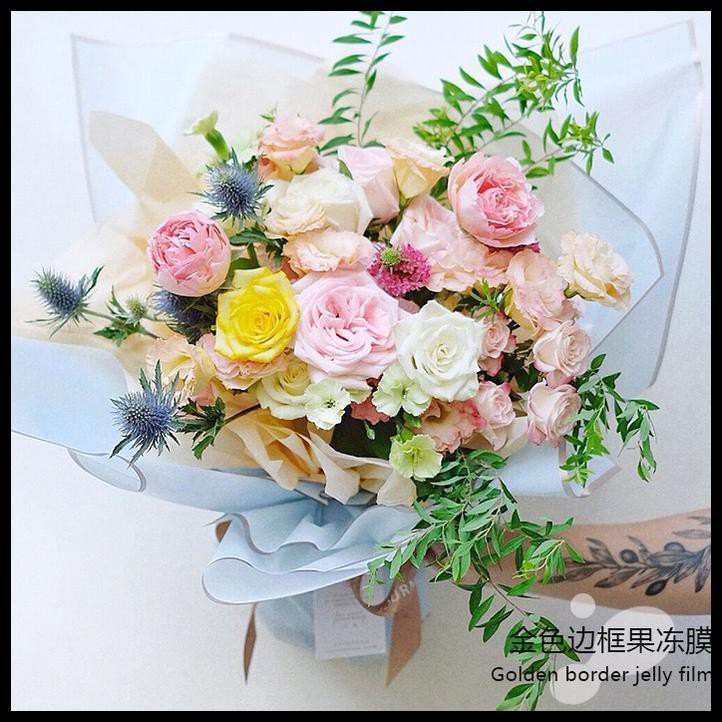 5 Lembar Gold Border Flower Wrap Kertas Bunga Tissue Bunga