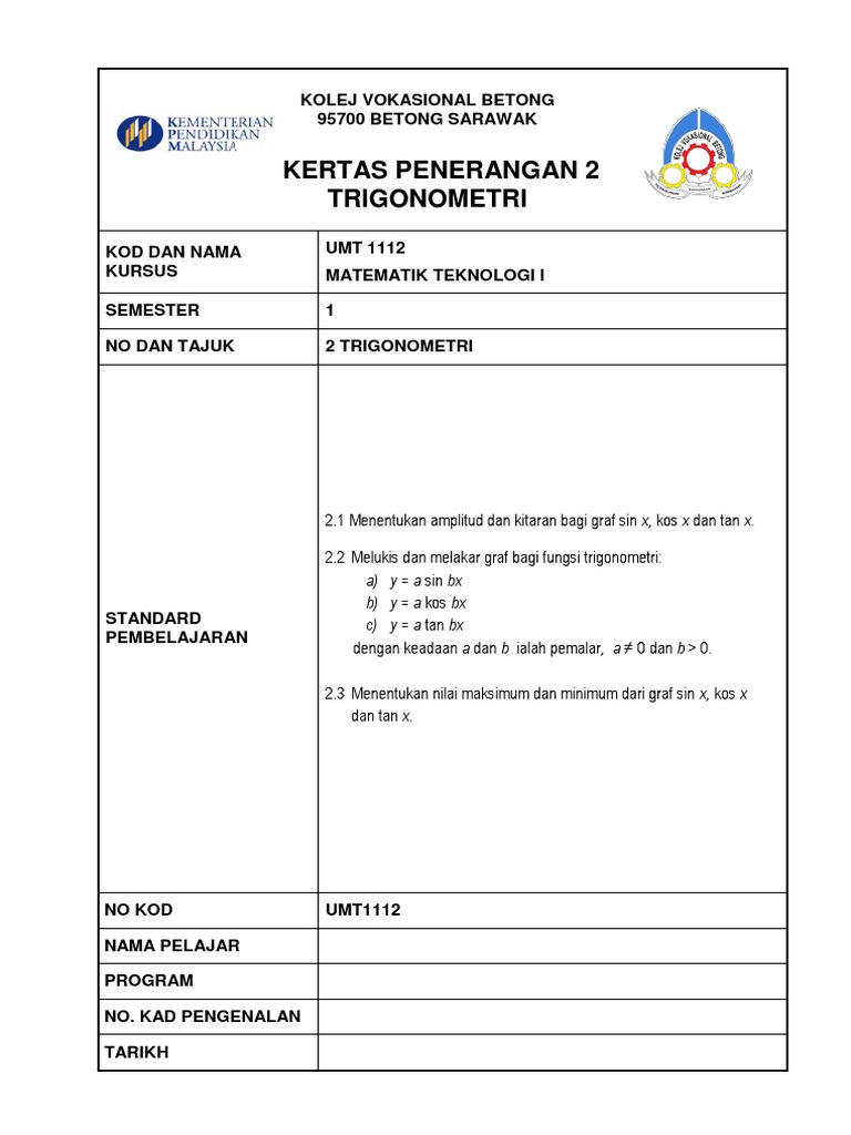 Bab 2 Trigonometri Kertas Penerangan Docx