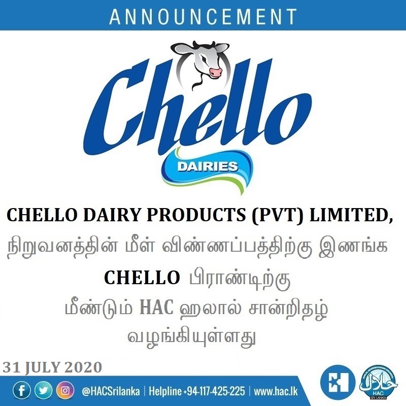 Hac Sri Lanka On Twitter The Hac Halal Certificate Issued To
