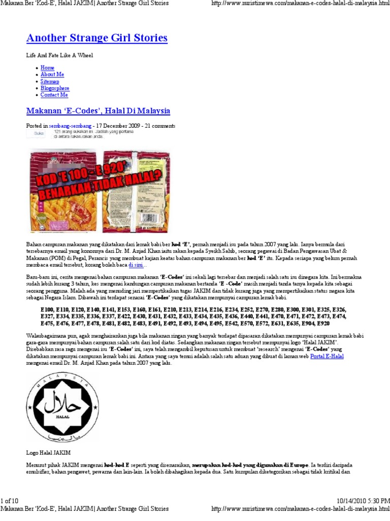 Makanan Ber Kod E Halal
