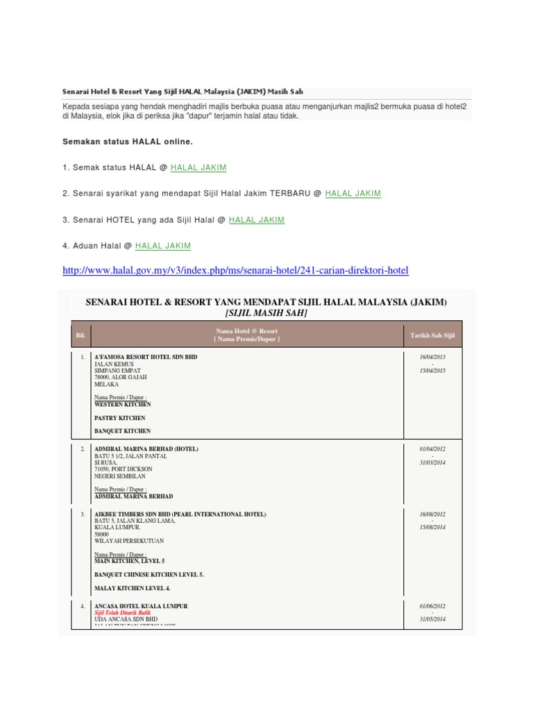 Sharing Is Power Senarai Hotel Diiktiraf Halal Oleh Jakim