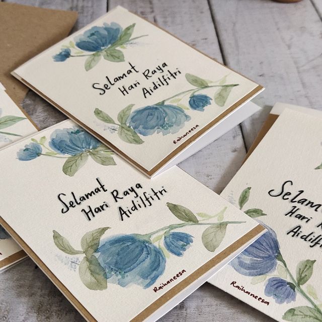 Kad Raya 2020 Watercolour Blue Flower Painting Shopee Malaysia
