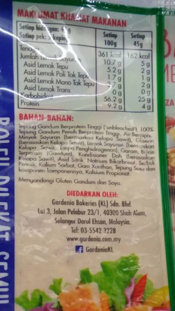 Kalori 2 Keping Roti Wholemeal Gardenia