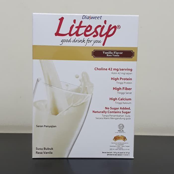 Diasweet Litesip Vanilla Kaya Protein Serat Kalsium 6x25gr