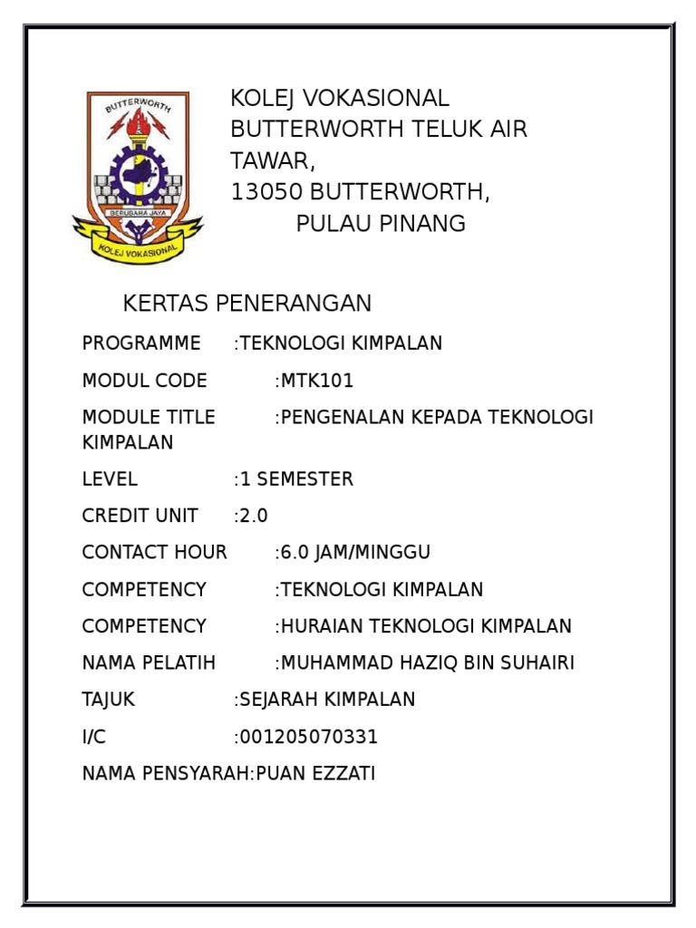 Jom Sertai Kami Di Kv Butterworth Pulau Kolej Vokasional