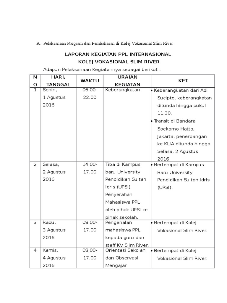 Pelaksanaan Program Dan Pembahasan Di Kolej Vokasional Slim River
