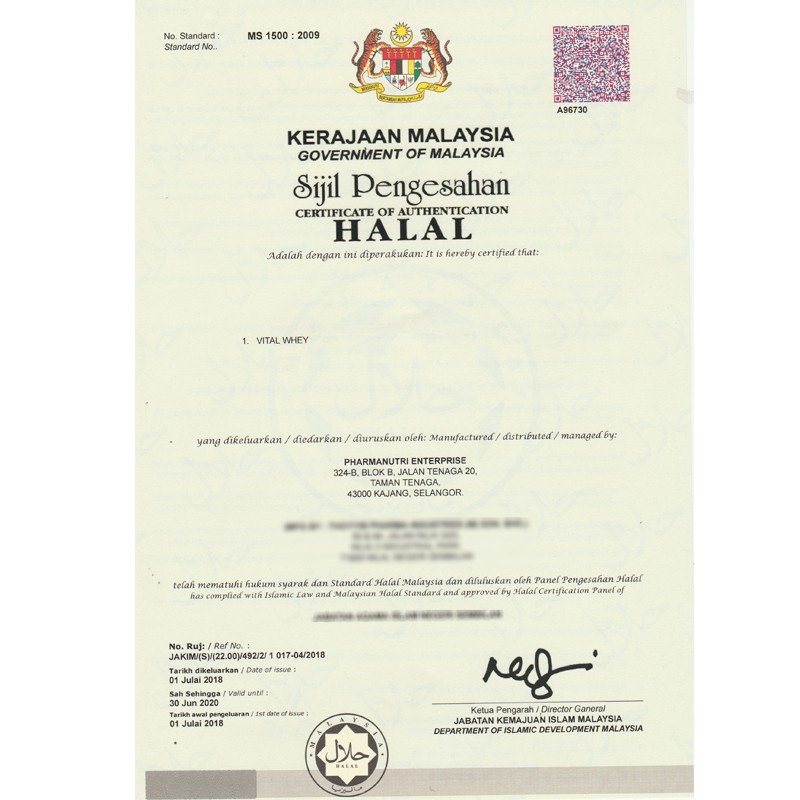 Protein Drink Vital Whey 1kg Halal Chocolate Free Shaker Vs