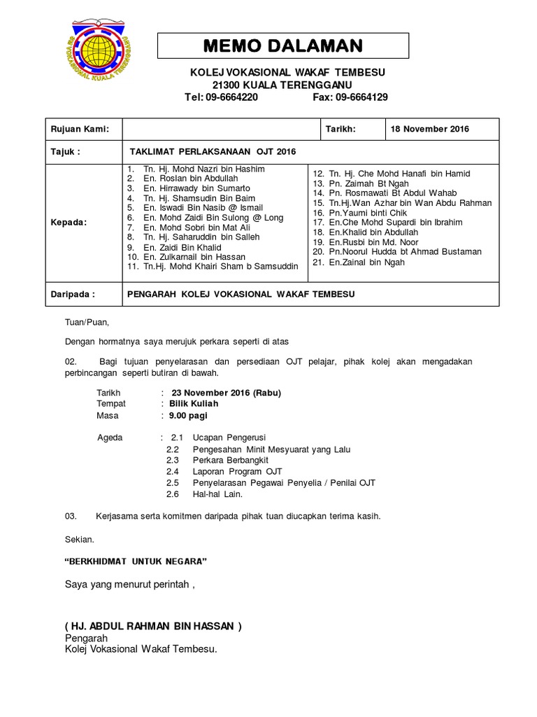 Tuan haji nazri b. Kolej vokasional wakaf tembesu.