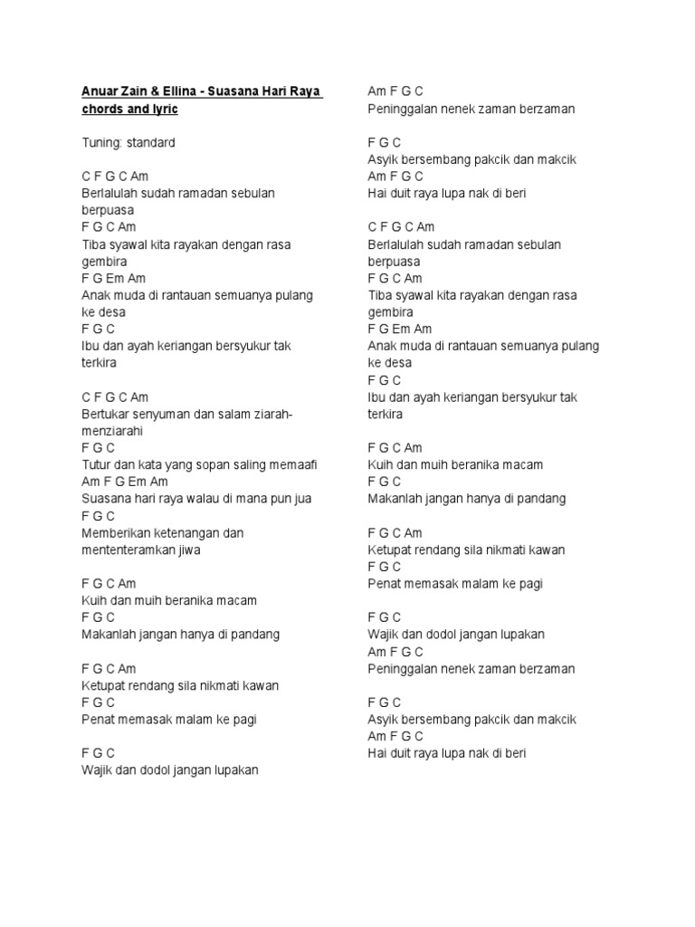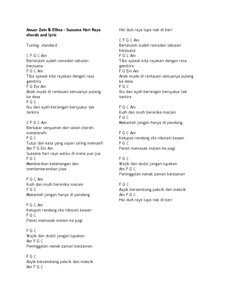 Anuar Zain Ellina Suasana Hari Raya Chords And Lyric
